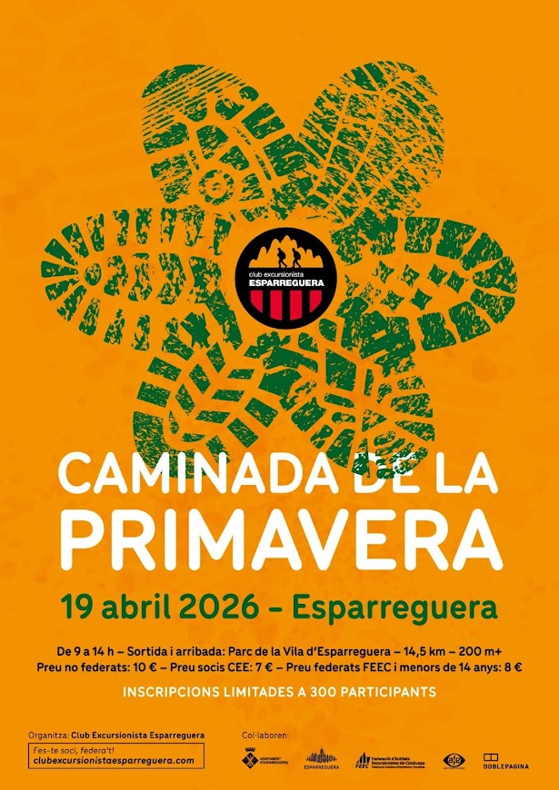 Benvinguts a la 6a edició de la Caminada de la Primavera, una activitat organitzada pel Club Excursionista Esparreguera, oberta a tothom, i que té com a objectiu conèixer l’entorn natural de la nostra vila.